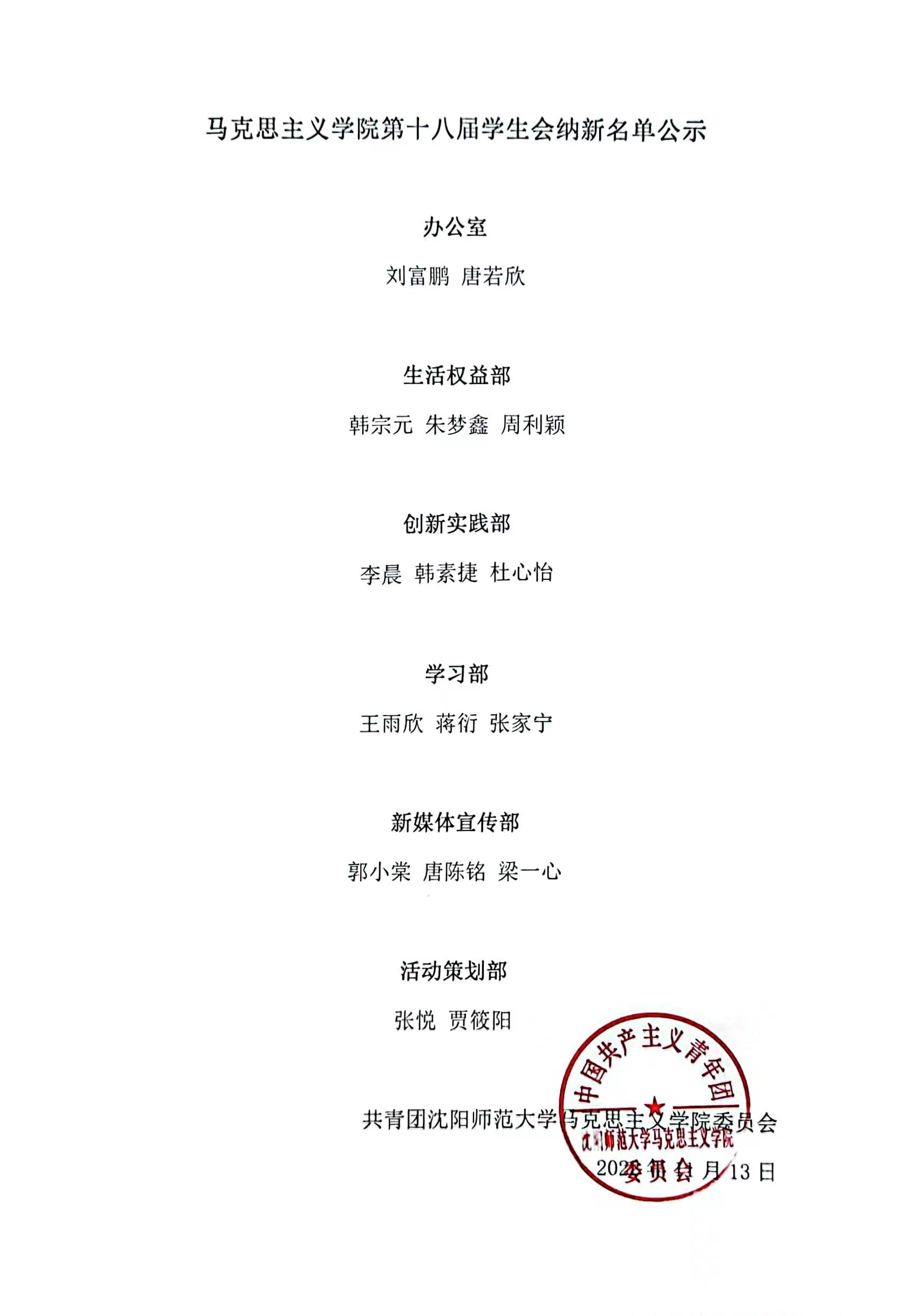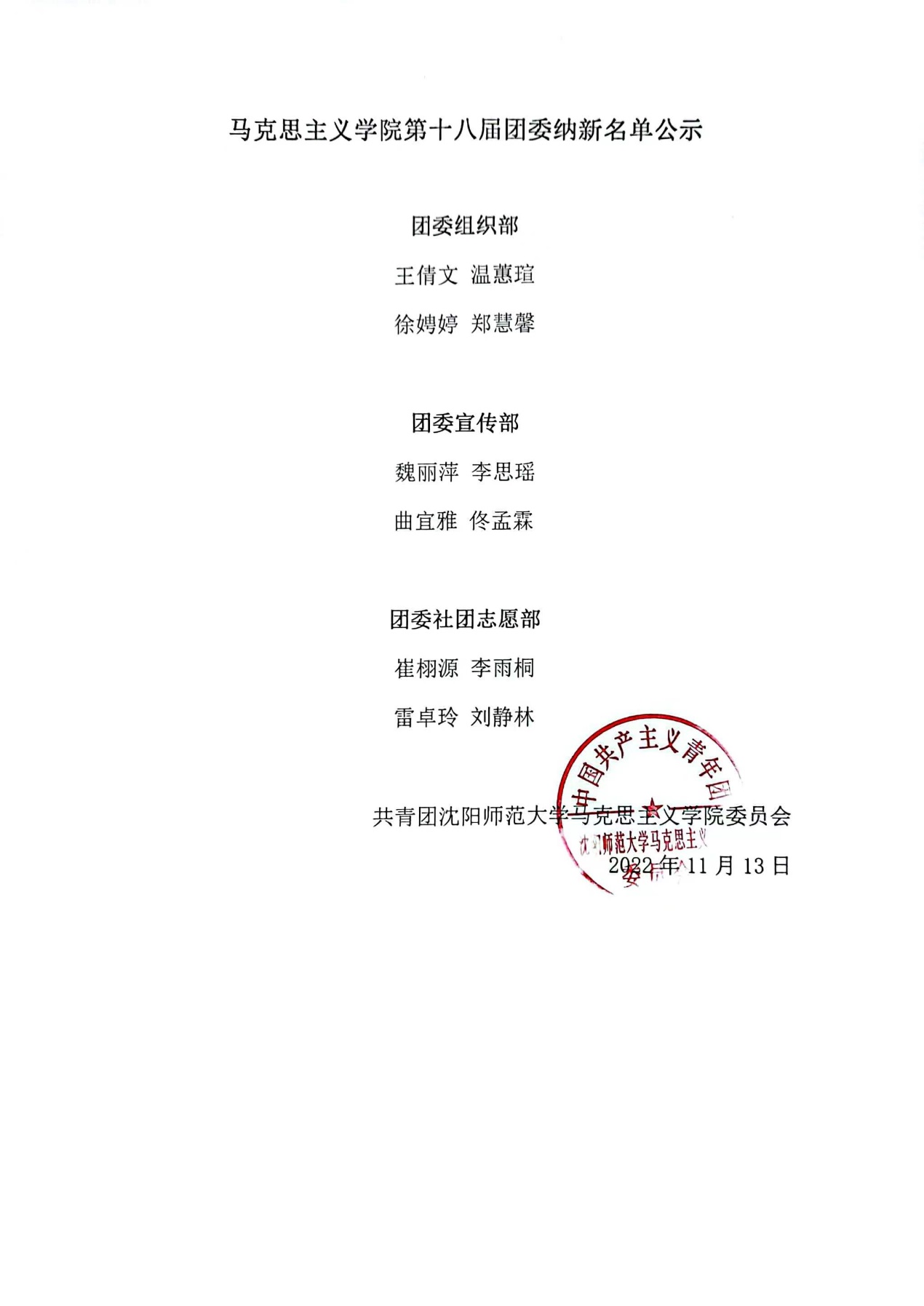 现将学院团委、员工会纳新名单公示如下,公示期从2022年11月16日至11月18日,如有异议,请联系威廉希尔williamhill团委办公室。